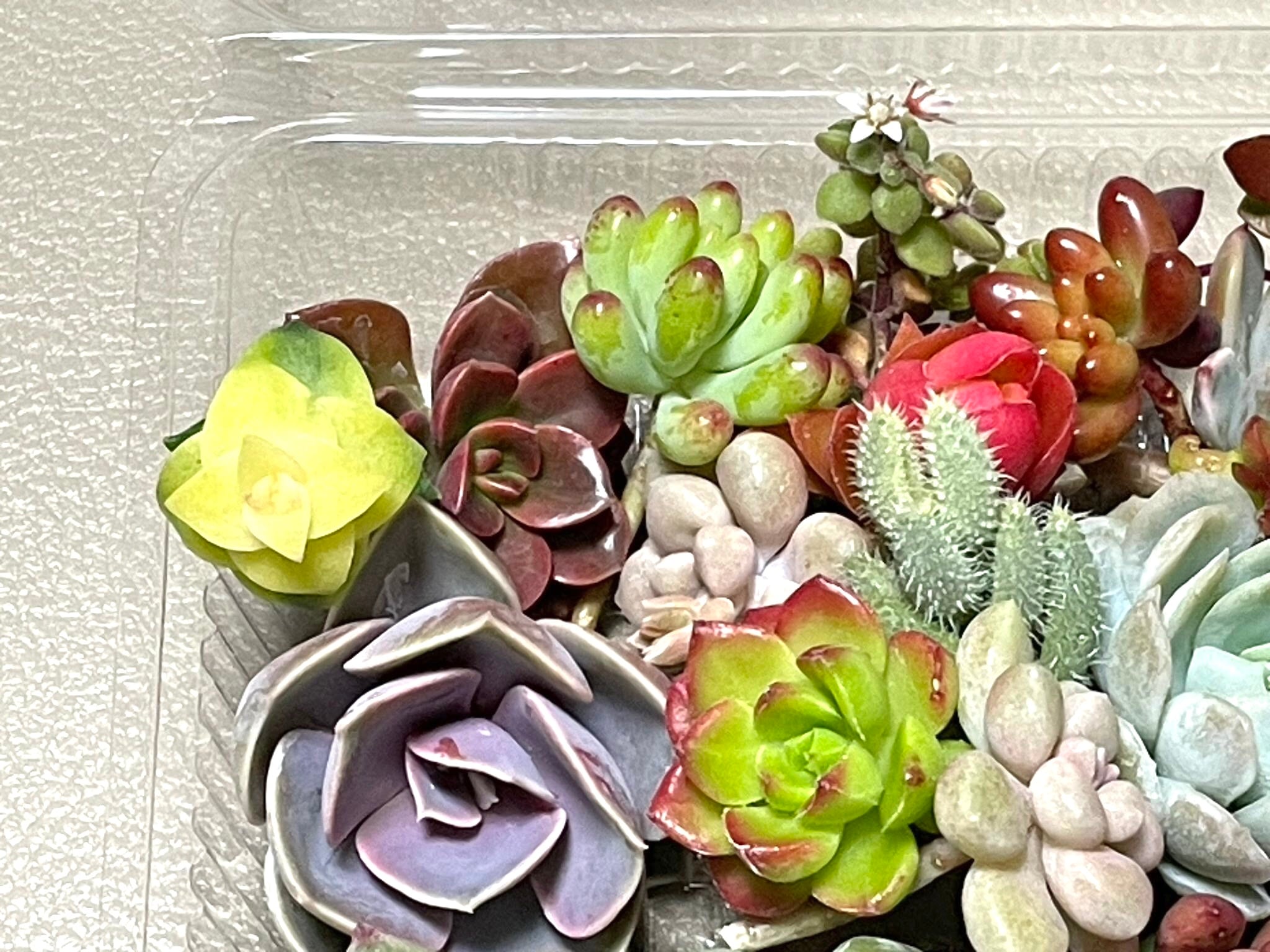 これはエケベリアを主役にした寄せ植え用に、さらにセダムたちをセットにしたものです。